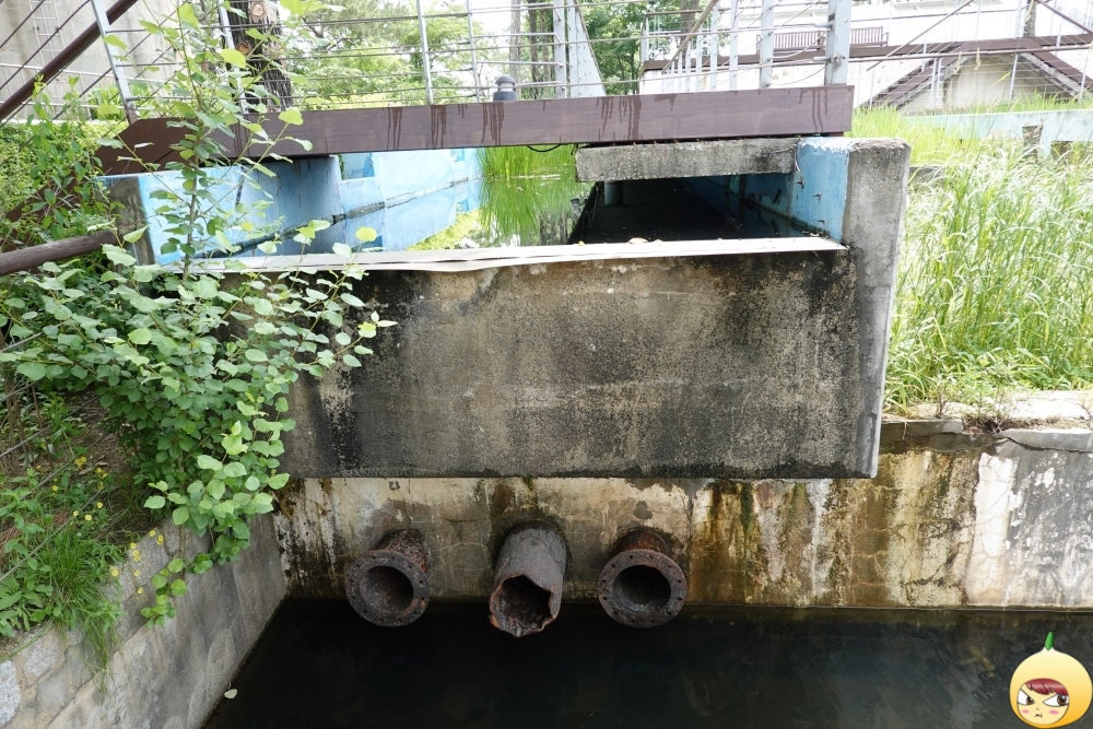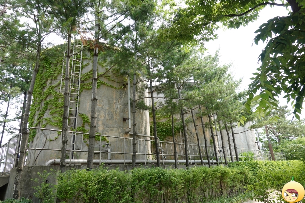 자연생태공원으로 한다면, 옛 흔적을 싹 지워도 됐을텐데 선유동공원은 정수장이던 시절의 흔적을 고스란히 남겨뒀다. 회색 콘크리트에 물얼룩과 녹슨 자국 등 미래소년 코난의 한 장면을에 떠올리게 한다. 자연과 전혀 어울리지 않을 거 같은 흔적들은 어느새 자연의 일부가 됐다.