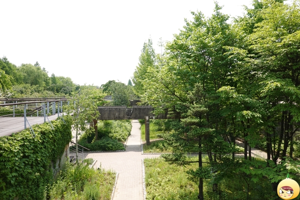 시간의 정원은 약품침전지를 재활용해 꾸민 공간이다. 폐허가 된 마을을 자연이 보듬어 주고 있는 느낌이랄까? 어릴때 봤던 만화, 미래소년 코난을 떠올리게 한다. 요즘 친구들은 코난을 모를테니, 유산슬이 부른 합정역 5번출구 뮤직비디오 배경이 바로 여기다.