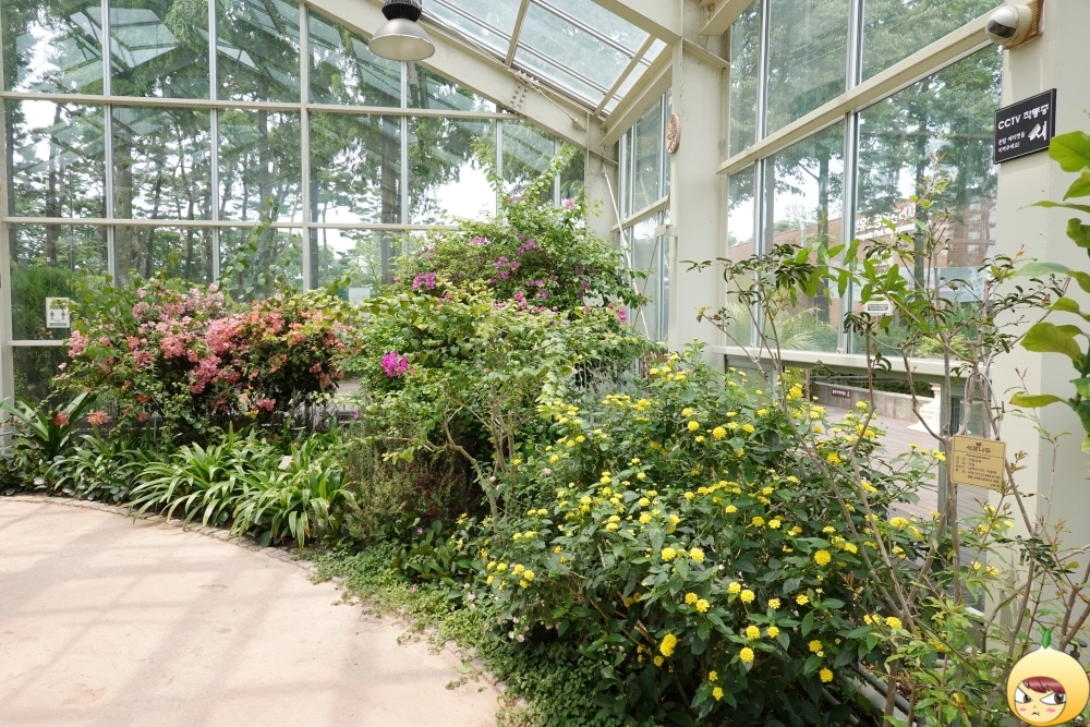 온실 규모는 직지만, 켄챠야자 같은 이국적인 식물부터 떡갈잎 고무나무 같은 관엽식물까지 사계절내내 다채로운 식물을 한자리에서 만날 수 있다. 온실 한바퀴를 도는데, 2분이 채 걸리지 않는다. 물론 나무를 하나하나 유심히 본다면 10분도 넘게 걸릴 거다. 느낌 아니까, 사진만 담고 이동했다.