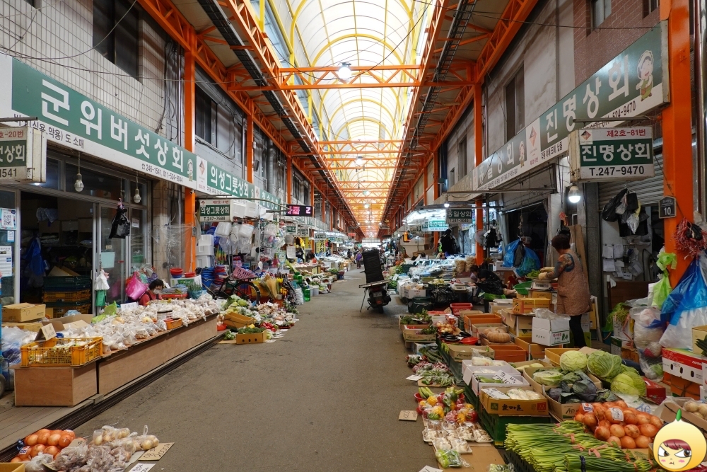 바닷가 시장이니 어시장이 큰 비중을 차지하지만, 이렇게 농수산물만을 파는 곳도 있다. 이외에도 건어물골목, 닭집골목, 양장점골목, 이불골목, 그릇골목, 한복골목 등 구역별로 품목이 나눠져 있다. 규모가 엄청나니, 한번에 다 둘러보는 건 살짝 무리다. 구룡포시장도 두어번 갔는데, 죽도시장은 3~4번은 가야 완전정복을 할 듯 싶다. 그래서 담에는 주전부리 위주로 투어를 할 생각이다.