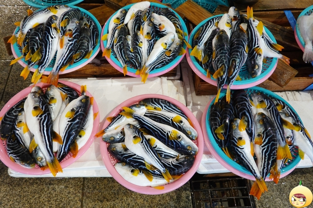복어다. 독버섯도 화려하고 예쁘다고 하더니, 독을 품고 있는 것들은 다 화려한가 보다. 그나저나 어시장에서 판매를 하는 복어이니, 독없는 복어일까? 서울촌사람에게 어시장 구경은 그저 신기할 따름이다.