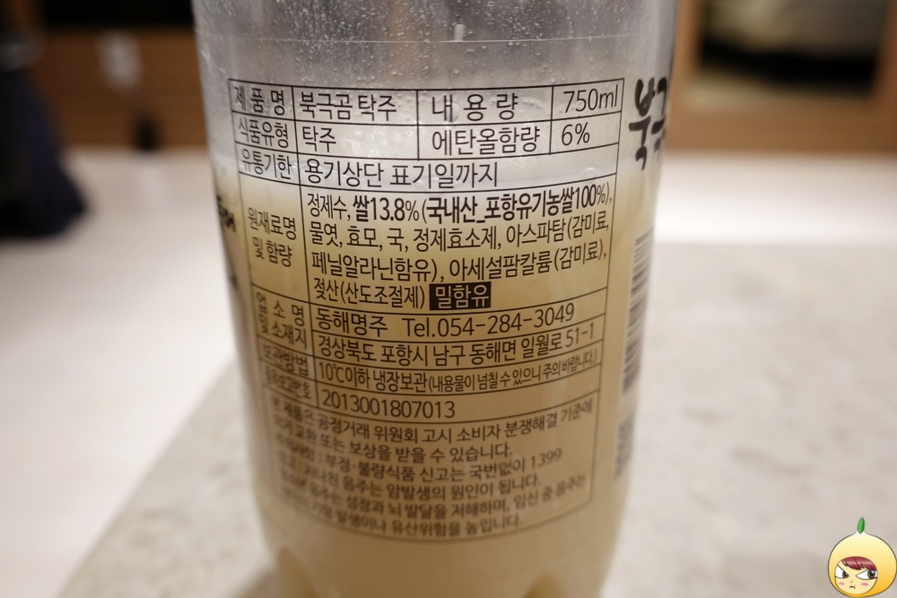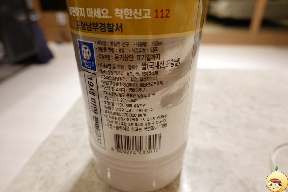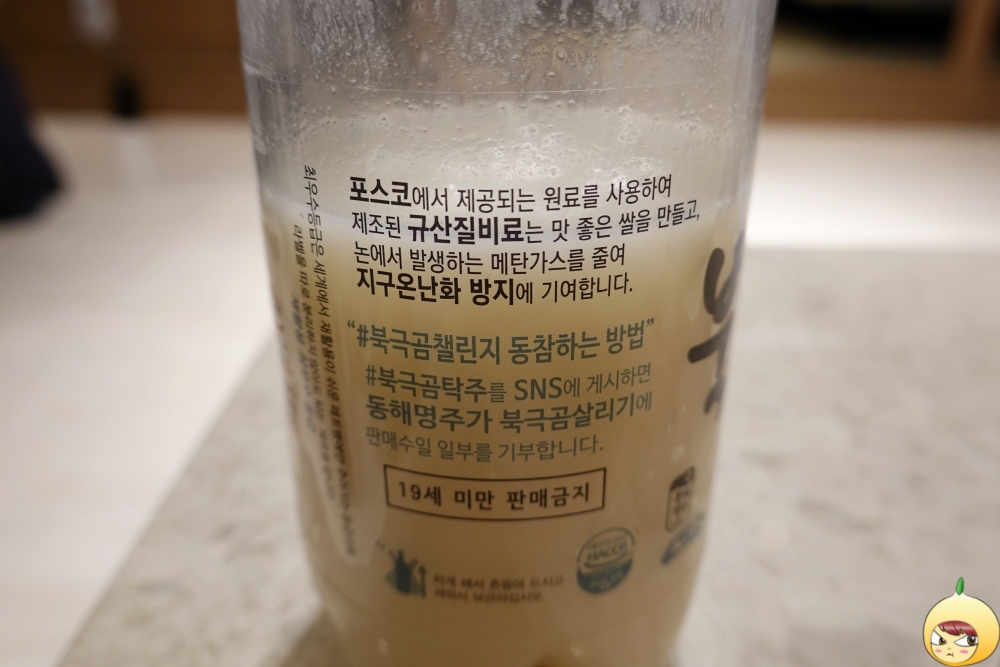 포스코에서 제공되는 원료를 사용해 제조된 규산질비료는 맛 좋은 쌀을 만들고, 논에서 발생하는 메탄가스를 줄여 지구온난화 방지에 기여를 한단다. 영일만친구는 포항쌀로 만든다면, 북극곰탁주는 포항유기농쌀로 만든다. 합성감미료인 아스파탐은 셋 다 들어 있다. 셋 중에서 가장 장수스럽다고 해야 할까나? 서울에서도 즐겨 마셨던 장0막걸리와 가장 흡사했다. 즉, 탄산도 과하도, 단맛도 과하다.