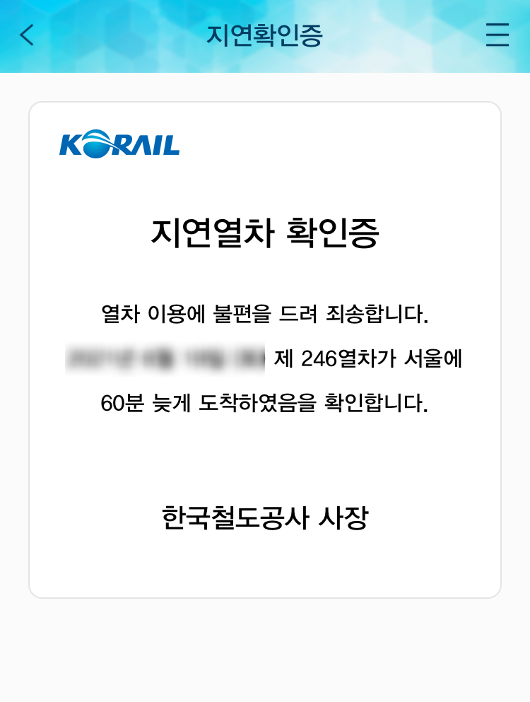 영등포역에 도착해 승차권을 확인하니, 지연확인증 발급하기가 생겼다. 터치를 하니, 60분 늦게 도착했다는 지연확인증이 나왔다. 이걸로 무엇을 할 수 있을까? 3가지 배상 방법이 있다.