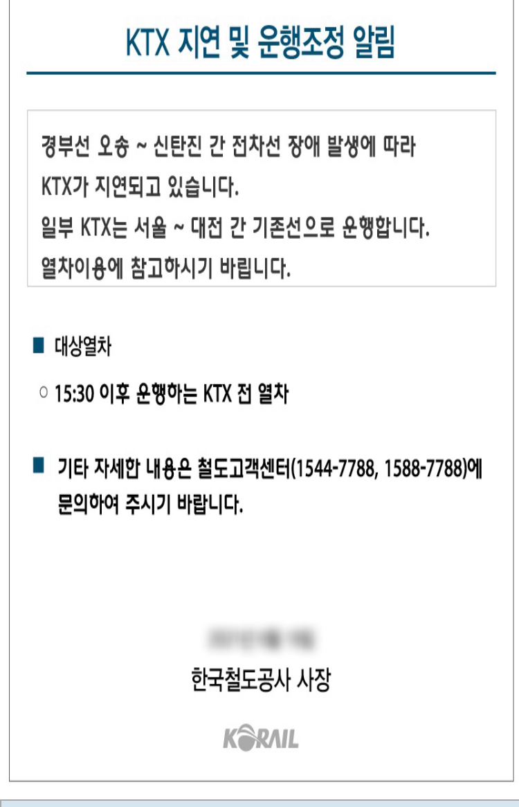 서울역보다는 영등포역이 집에서 더 가깝기에, 좋다고 해야할까나? 예정시간보다 한시간 늦게 도착을 했고, 열차지연 배상안내에 관한 안내방송이 여러번 나왔다. 방송뿐만 아니라 문자도 오고, 코레일 앱에서도 열차지연에 대한 안내 공지가 떴다.