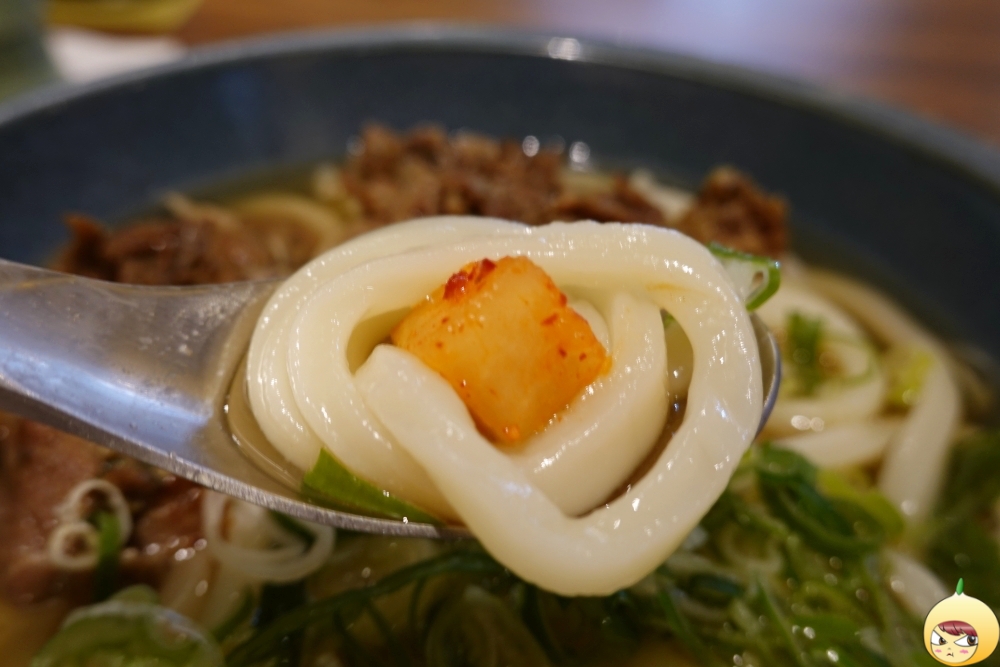 차가운 우동을 먹을때는 극강의 쫀쫀한 면발을 만나게 되는데, 뜨거운 육수이다 보니 극강은 아니지만 그래도 탱글탱글하니 면발 탄력이 좋다. 이래서 우동은 전문점에서 먹어야 하나보다. 아직 고기로 넘어가기 전인데, 면만 먹어도 파채를 올려서 먹어도 좋다. 깍두기는 선택이지 필수는 아니다.