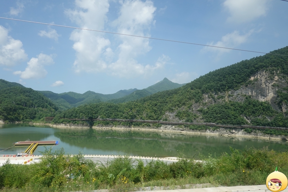 열차는 청량리역을 지나 원주역에서 잠시 정차를 했다. 제천역을 지나 단양역에 도착을 하려고 하는데, 창밖 풍경에 카메라를 아니 꺼낼 수가 없다. 강? 호수? 암튼 공중에 떠 있는 듯한 데크길이 나타났다.