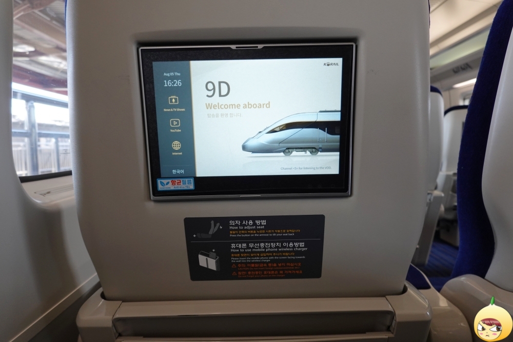 일반실과 우등실의 가장 큰 차이점은 좌석마다 모니터가 있다는 거다. 그저 자리 표시를 하는 모니터인 줄 알았는데 아니다. 인터넷도 되고, 뉴스와 같은 영상을 볼 수 있으며, 유튜브도 된다.