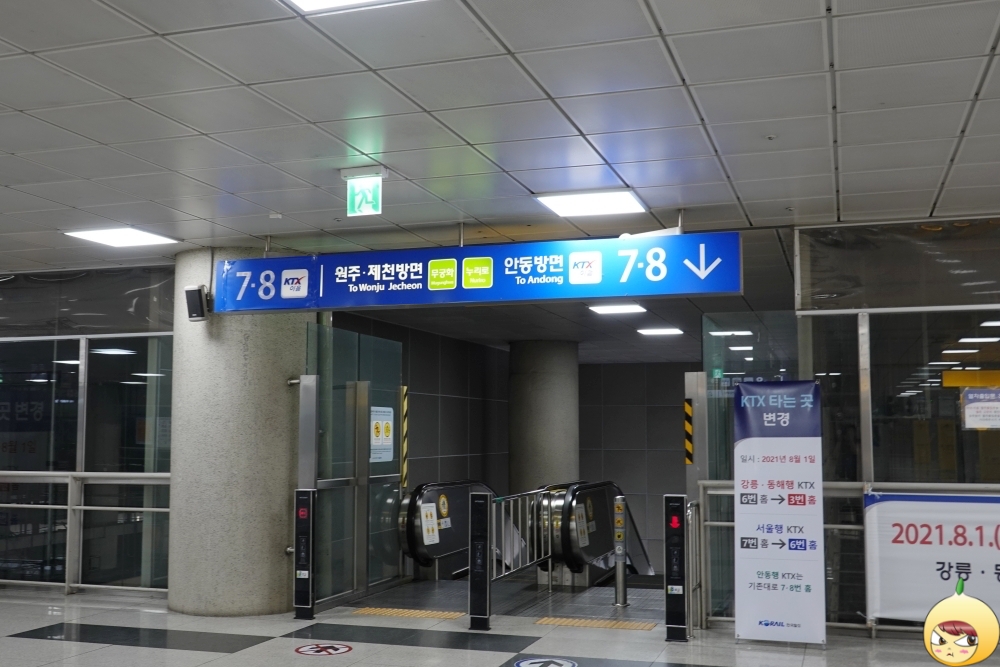 용산역이나 서울역에서 KTX이음을 타는 줄 알았는데, 다른 열차와 달리 청량리역에서 출발을 한다. 자주 다니던 역이 아니다 보니 영 어색하다. 혹시나 늦을까봐 30분 일찍 도착을 했고, 화장실은 어디에 있고, 어디서 나가 어떻게 기차를 타야 하는지 꼼꼼하게 살폈다. KTX이음 안동방면 열차는 7, 8번 홈에서 타면 된다.