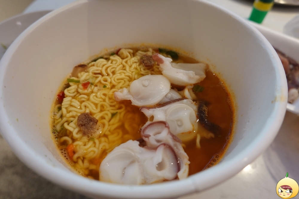문어만 먹고 있으니 재미가 없다. 새콤달콤하게 샐러드로 먹고 싶지만, 재료도 없고 요알못이라 할 줄 모른다. 이때 친구 왈, 라면에 넣어서 먹으면 괜찮다. 남은 회를 매운탕에 넣어서 먹는 느낌이랄까? 야들야들 부드러움에서 꼬들꼬들 부드러움로 변했다.
