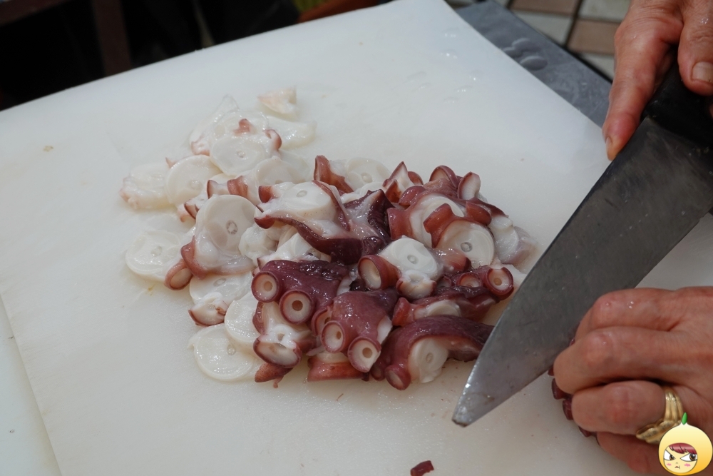 이따가 실컷 먹을텐데, 맛이 너무 궁금해 썰고 있는 중에 하나만 달라고 해서 맛을 봤다. 중저음인 듯 묵직한 문어의 풍미가 입안 가득 퍼지면서, 질기지 않고 야들야들하니 부드럽다. 계속 집어 먹고 싶었으나, 술과 함께 먹어야 하기에 꾹 참았다.