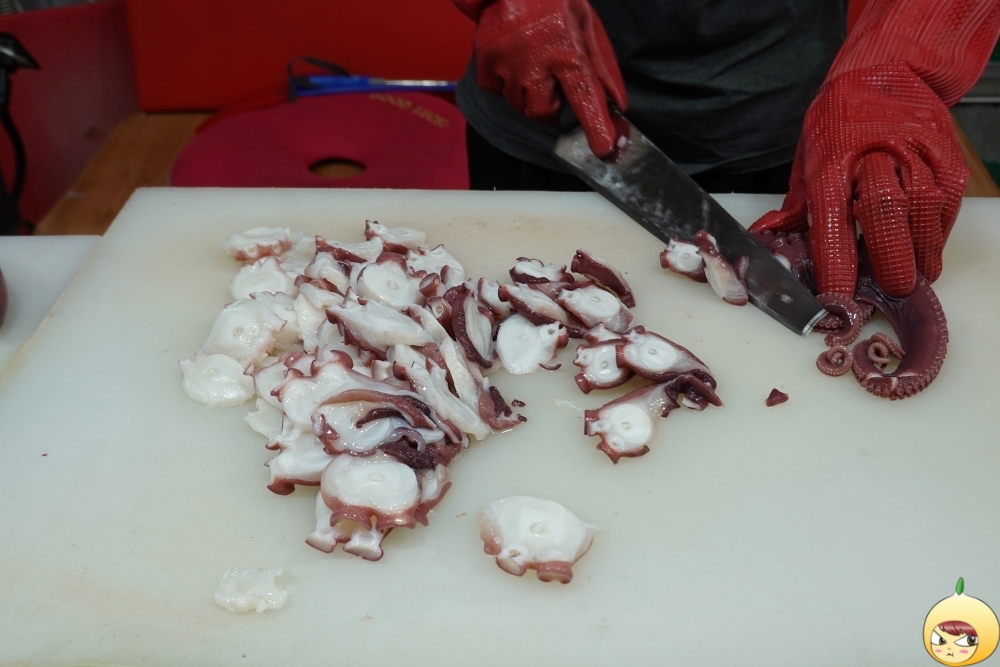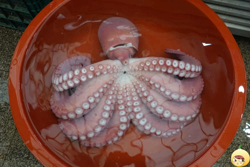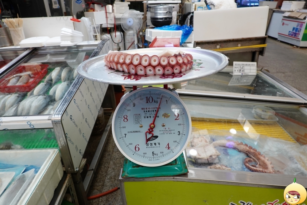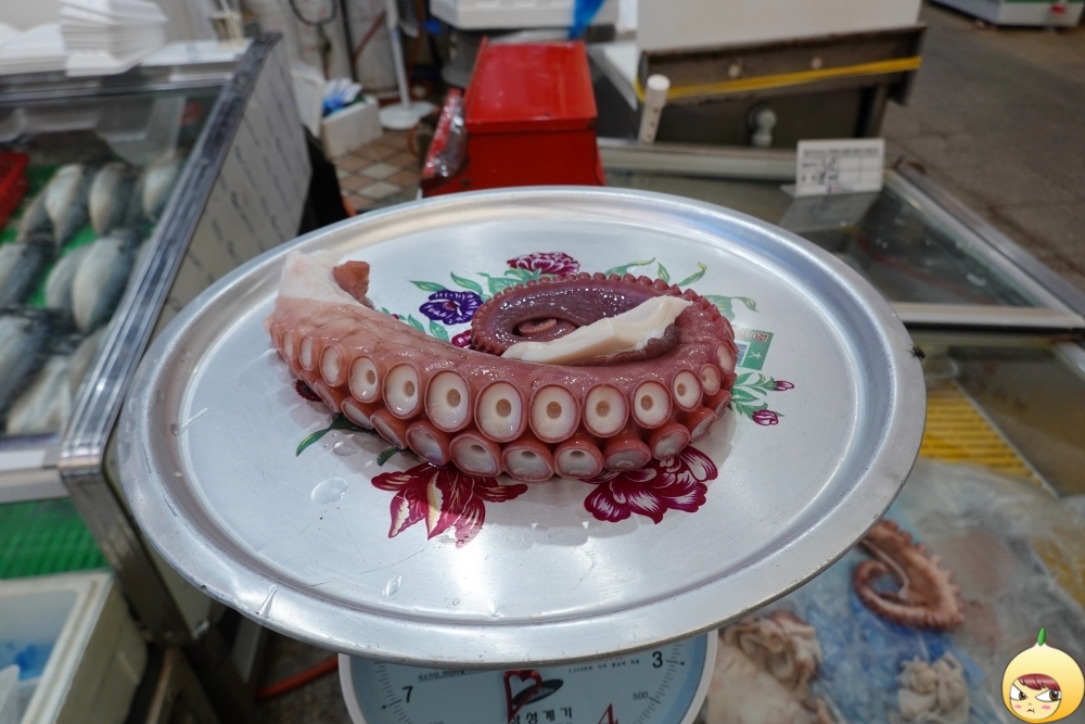 안동참문어를 선택한 건, 고무대야에 들어있는 문어가 너무 예뻐서다. 생문어인 줄 알았는데, 자세히 보니 삶은 문어다. 어쩜 저리도 자태가 고울까? 녀석을 보자마자, 다른 가게에 갈 마음이 싹 사라졌다.