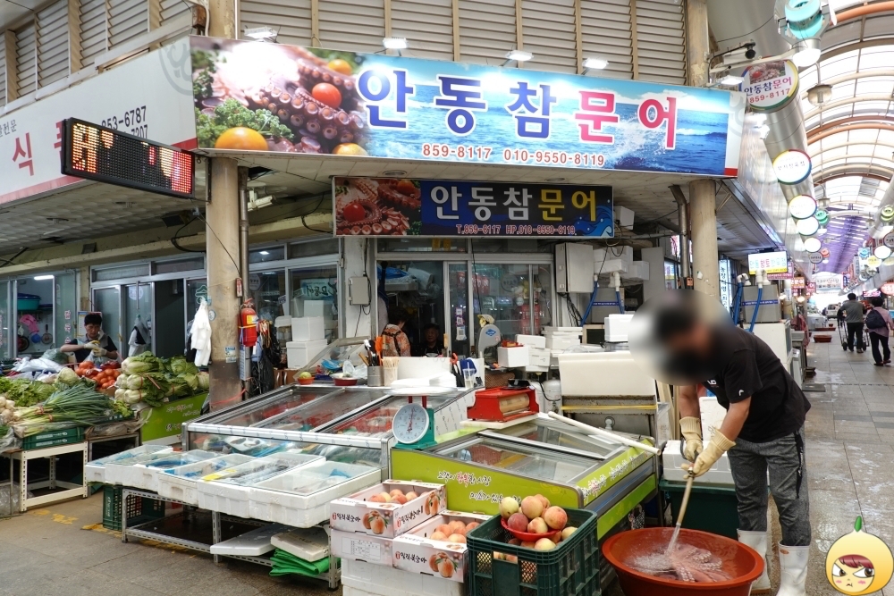안동참문어를 선택한 건, 특별한 이유는 없다. 시장에 들어와서 처음으로 만난 가게였다. 가격 비교도 하면서 여기저기 다녀야 하는데, 간고등어처럼 가격 차이가 거의 없을 거라는 생각에 여기서 걸음을 멈췄다.