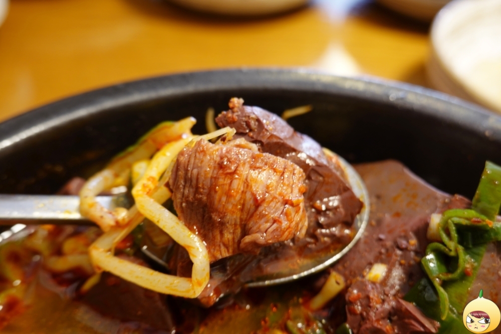 그나저나 여름무는 맛이 없다고 하더니, 무가 빠졌다. 원래 무가 없었나 싶어 지난번에 먹은 사진을 보니, 그때는 무가 들어있다. 여름이라서 빠졌는지 모르지만, 무가 없어서 그런지 국물이 시원하지 않고 텁텁하다. 그래도 선지 상태는 매우 좋다.