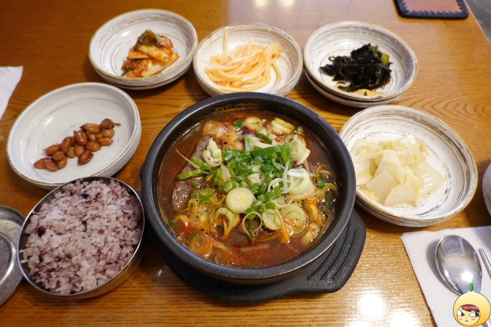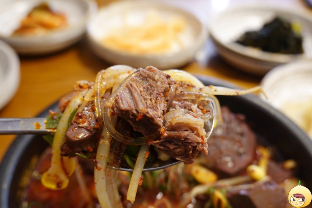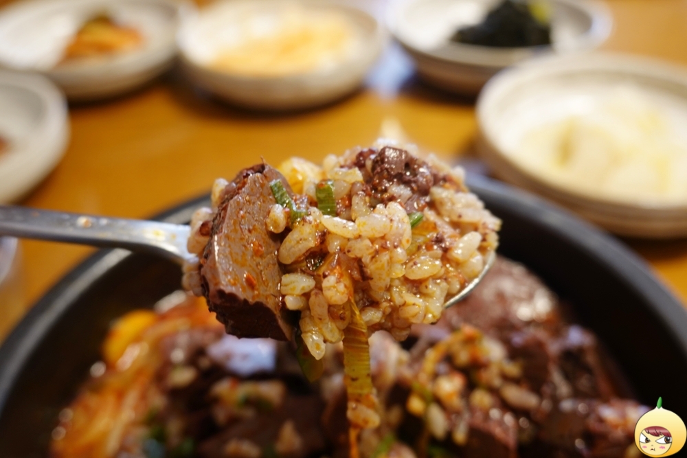 역전회관은 바싹불고기가 대표메뉴지만, 점심한정으로 식사메뉴도 은근 괜찮다. 거의 다 먹어봤기에, 뜨끈한 국물 더하기 얼큰함까지 역전해장국(10,000원)을 주문했다. 선지백반은 선지가 들어 있는 소고기뭇국이라면, 역전해장국은 빨간맛 선짓국이다.