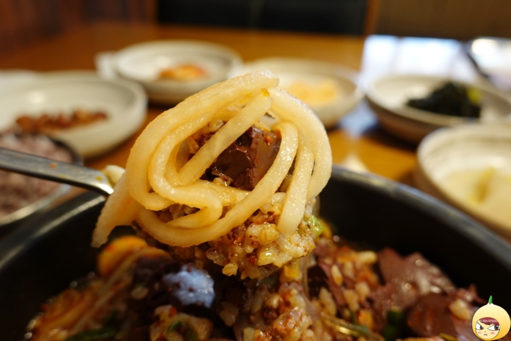 큼지막한 선지가 꽤 많이 들어 있다. 고기도 있지만, 선지가 9할이라면 고기는 1할쯤 된다. 해장국이니 콩나물도 있고, 선지백반에는 없는 당면이 얼큰해장국에는 있다.