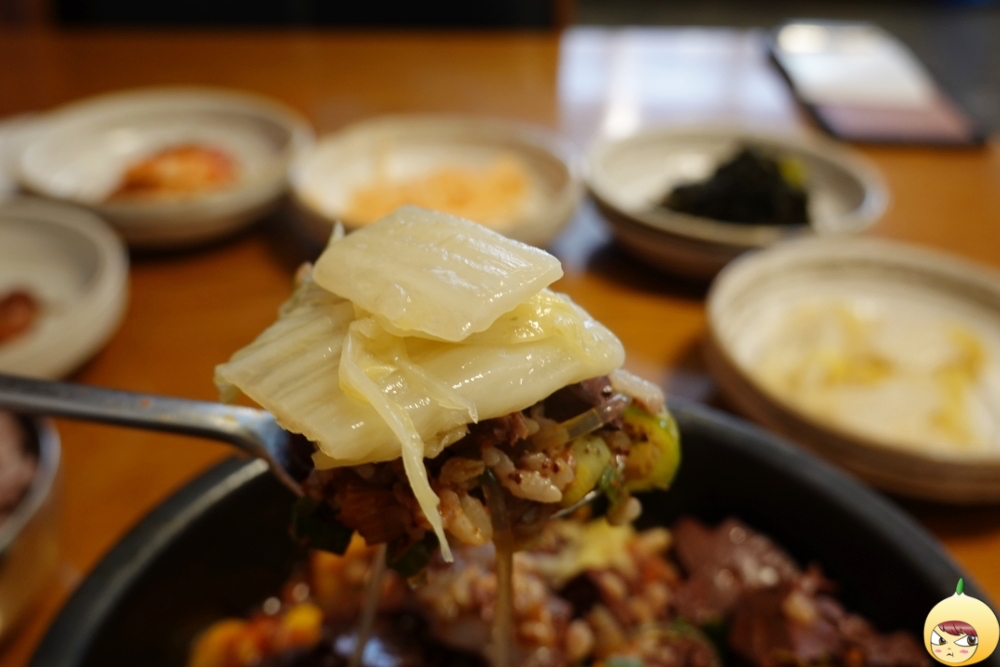 양념이 강한 겉절이와 상큼한 무생채 그리고 참기름향이 좋은 알배추나물 중 이날 베스트는 알배추나물이다. 빨간 국물이니 양념이 강한 겉절이가 잘 어울릴 줄 알았는데, 참기름때문인지 알배추나물이 더 조화롭다.