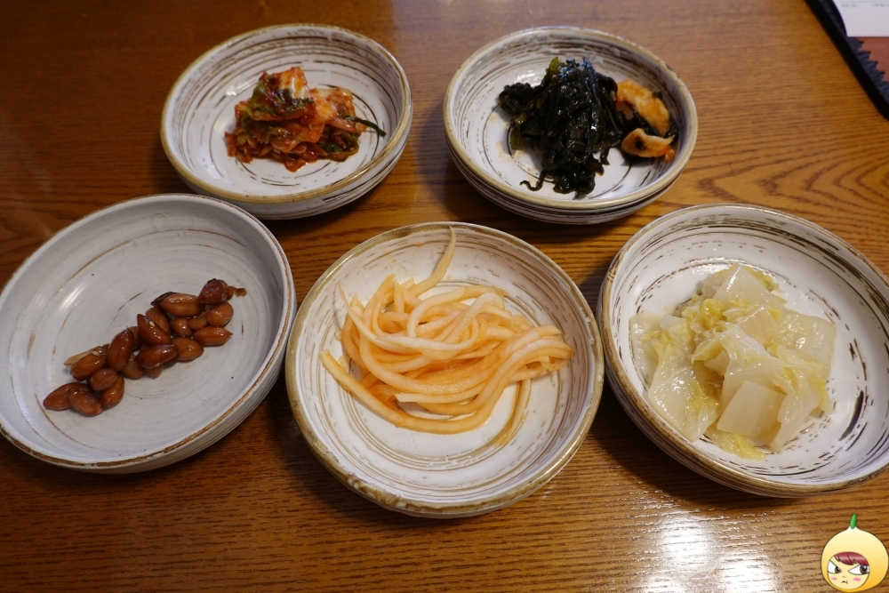 다섯가지 기본반찬은 늘 변함이 없다. 미역초무침과 땅콩조림은 거의 먹지 않고, 무생채, 겉절이 그리고 알배추나물 위주로 먹는다.