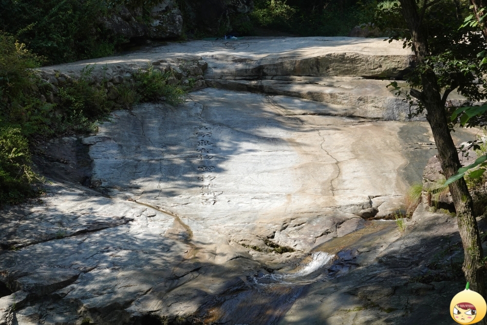 만휴정에서 나와, 각자가 새겨있는 큰 바위 부근에 왔다. 날이 가물지 않았더라면, 시원하고 세찬 물소리를 들을 수 있었을텐데, 그래도 졸졸졸 물은 계속 흐른다.