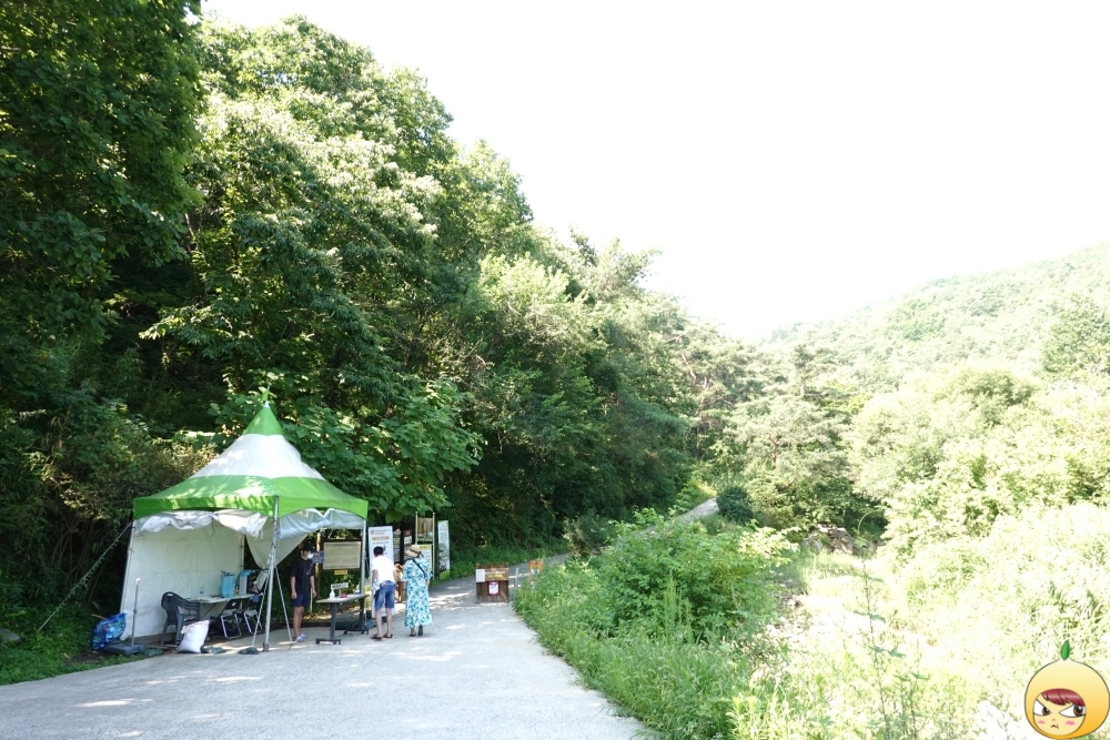 주차장에서 명부를 작성하는 곳까지 약 5분 정도 걸리고, 여기서 만휴정까지 오르막이라서 10분 정도 더 걸린다. 무지 천천히 걸었을때 기준이므로, 더 빨리 도착할 수 있다. 손소독과 명부를 작성하고, 다시 걷는다.