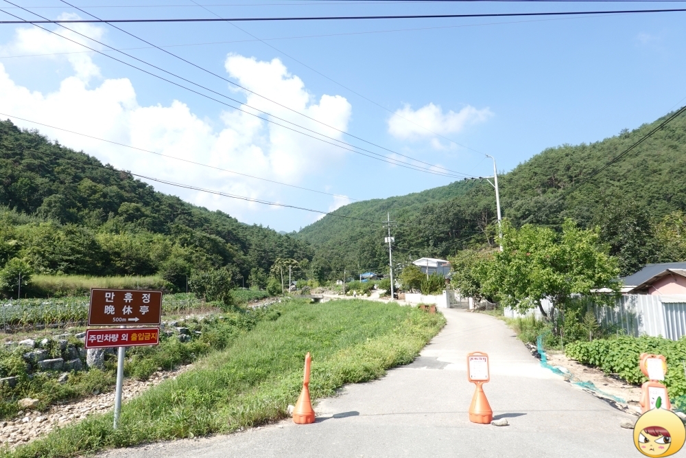 안동은 서울의 2.5배 크기라고 하더니, 시내에서 만휴정까지 거리가 좀 된다. 맘모스제과에서 30분 정도 달려 만휴정에 아니 임시주차장에 도착을 했다. 만휴정에는 화장실이 없기에, 급하다면 주차장 끄트머리에 있는 간이화장실을 이용하면 되는데 추천하고 싶지 않다. 하늘은 미세먼지 하나 없이 맑고 푸르지만, 땅은 계란후라이가 가능할 정도로 엄청난 폭염이다.