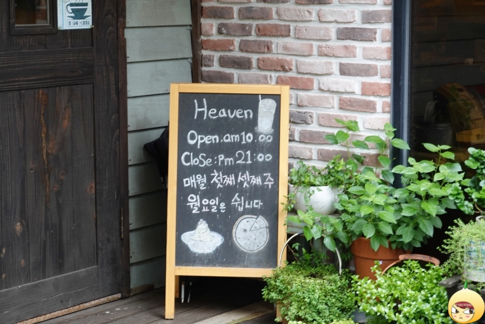 헤븐카페는 매월 첫째, 셋째주 월요일은 휴무임다. 아기자기한 소품은 밖은 물론 안에도 쫙 펼쳐져 있다. 분위기는 한옥카페가 더 좋을지 모르지만, 사람없고 고즈넉한 헤븐이 더 좋다.