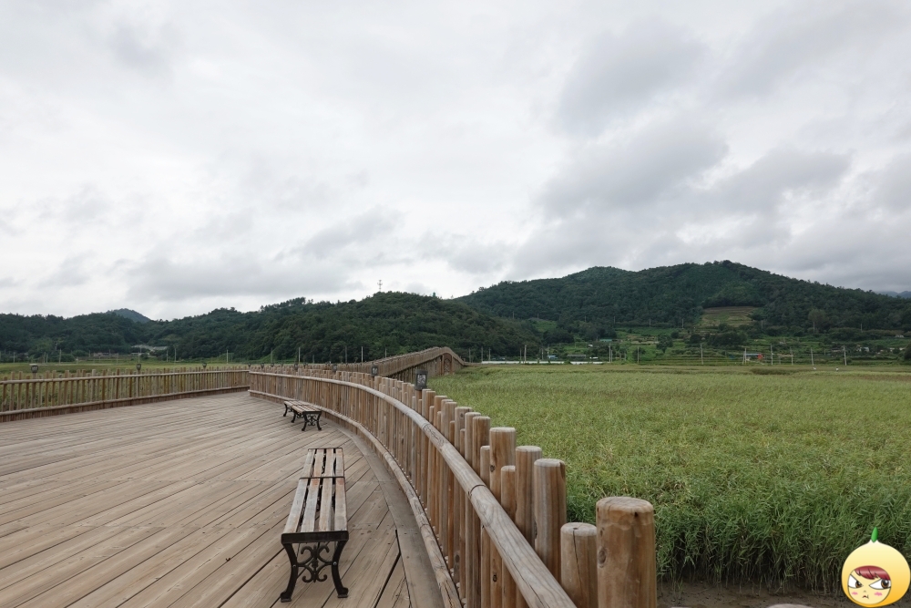 4년 전에 왔을때는 그저 중도방죽을 걸었는데, 이번에는 방죽 옆으로 없던 데크길이 생겼다. 순천만 갈대밭 전경을 보기 위해서는 등산인 듯 아닌 듯 용산전망대로 올라가야 한다. 그러나 중도방죽 갈대밭 전경은 데크길을 따라 그저 가뿐히 올라가면 된다.
