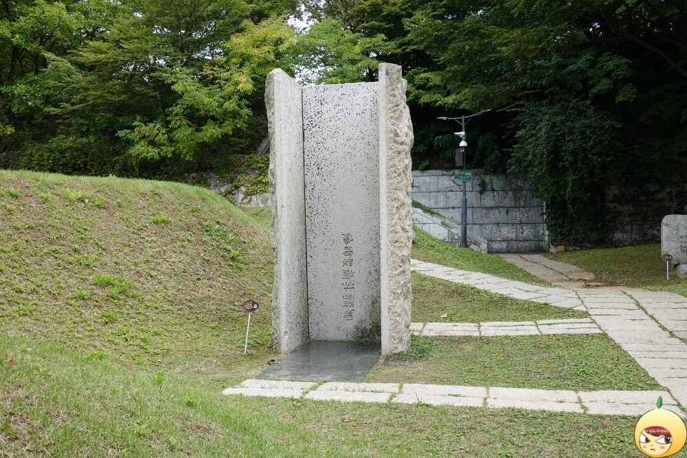 거꾸로 세워진 돌기둥은 을사조약의 체결을 성사시킨 히야시 곤스케 동상이 이곳에 세워졌고, 이를 받치고 있던 판석이다. 판석을 거꾸로 세움으로써 명예롭지 못한 역사를 반성하는 의미를 담고 있다.