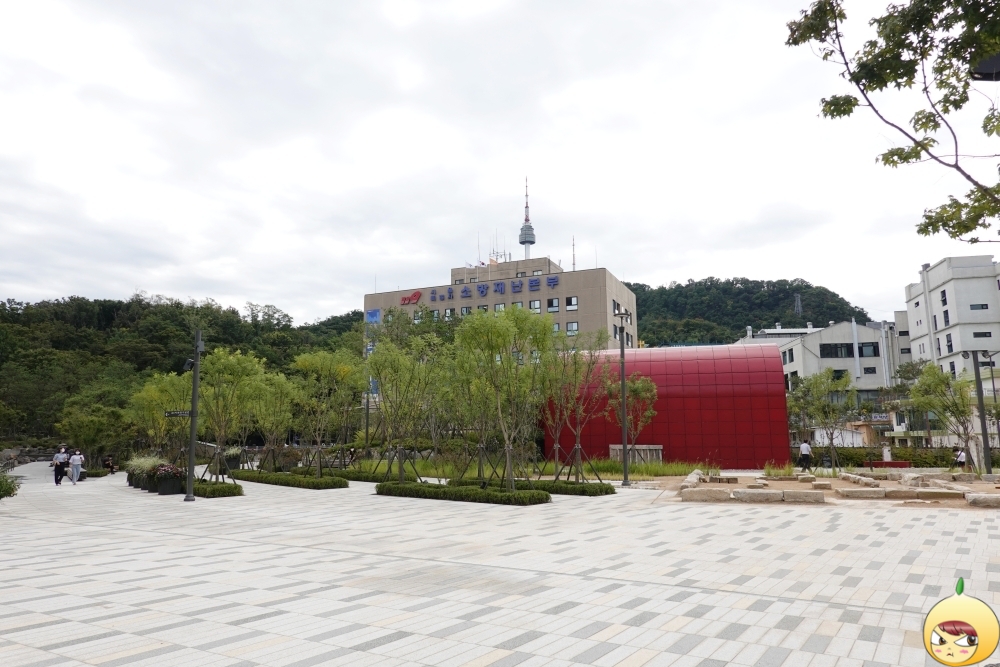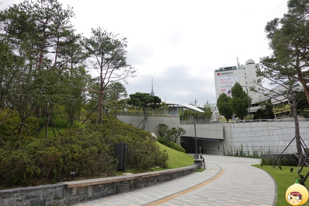 에스컬레이터를 타고 2층같은 지상으로 나왔다. 남산의 자연경관을 가렸던 건물들이 다 사라지고, 약 7,000평 규모의 녹지공원이 조성됐다. 정식 개장은 지난 6월 9일에 했으니, 따끈한 신상(?) 공원이다.