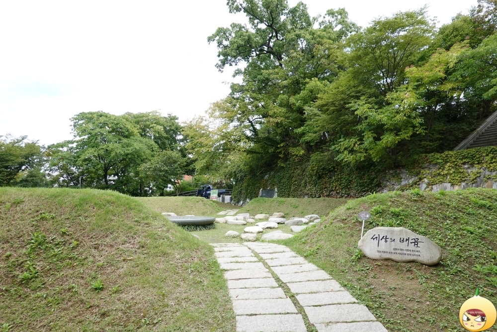 가운데 흔들리는 고흥석 주위에는 편안한 높이의 능선이 둘러져 있으며, 그 위에 놓여있는 자연석과 잔디에서 사람들은 편안히 휴식을 취할 수 있다.