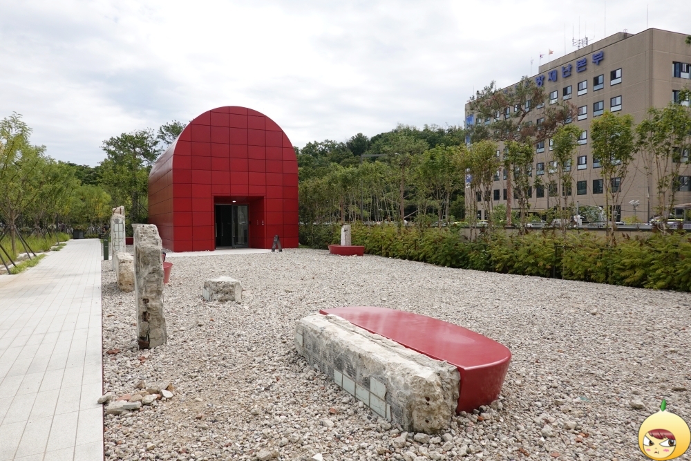 조선총독부 관사 터의 기초 일부분을 그대로 보존한 유구터가 나오고, 그 뒤 빨간 건물은 중앙정보부 6국이 있던 자리로 도시재생을 거쳐 기억6이라는 공간으로 다시 태어났다.