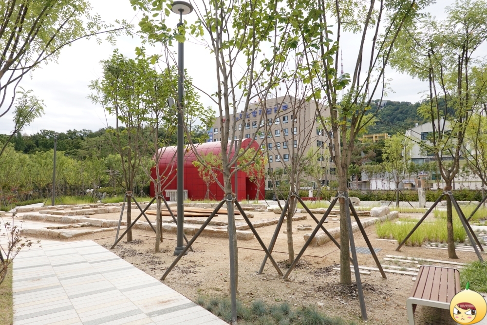 공원 규모가 있으니, 남산의 고유 수종인 소나무 군락을 비롯해 교목, 사철나무, 관목 등 총 62,033주 나무를 식재했다고 한다. 아직은 어린 나무이지만, 산림욕하기 좋은 나무로 무럭무럭 자라렴.