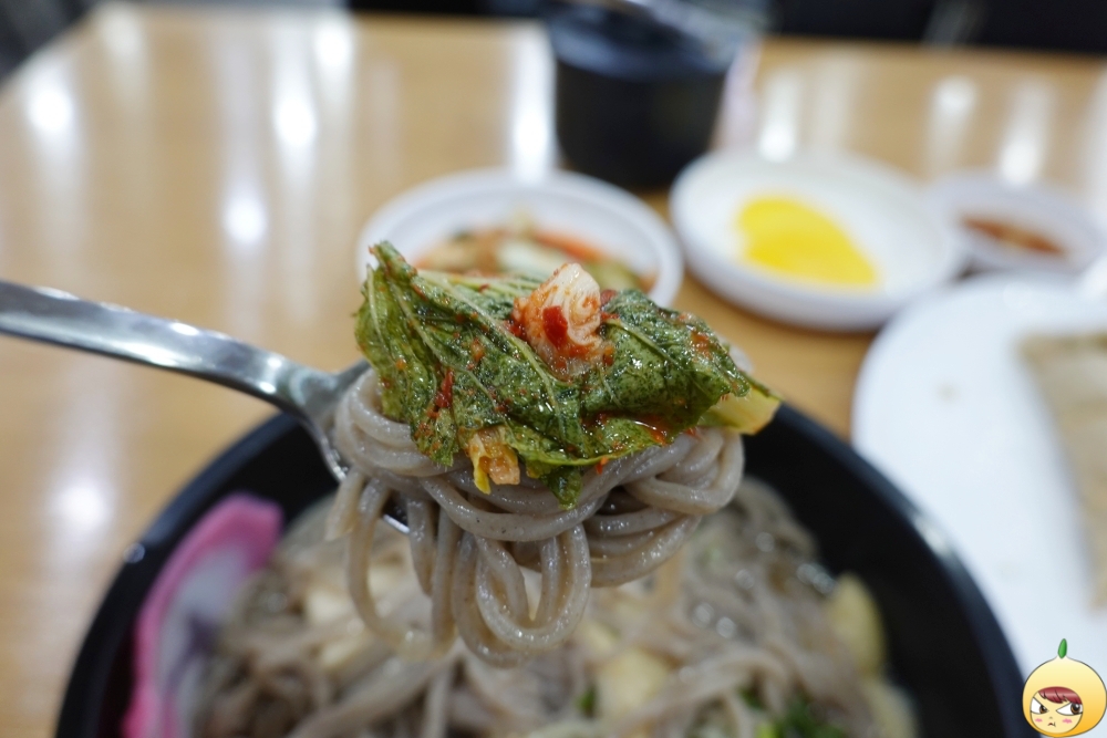 메밀전병과 달리, 온메밀은 열무김치도 단무지도 잘 어울린다. 새콤하게 한입, 달달하게 한입, 슴슴한 온메밀이 자칫 심심하게 느껴진다면 반찬으로 맛의 변화를 주면 된다.