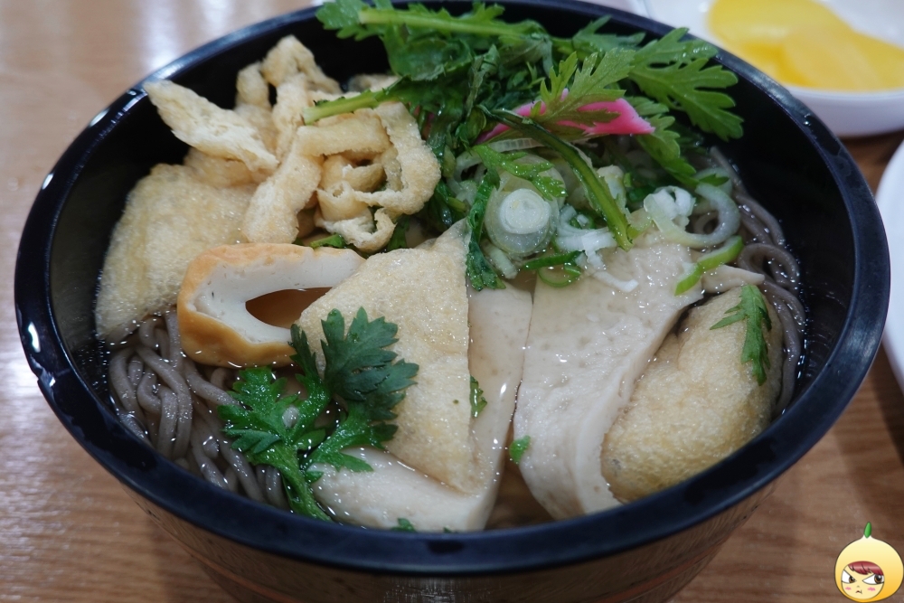 밀가루 국수였다면 가락국수라고 해도 됐을텐데, 온메밀답게 메밀국수가 들어 있다. 100% 순메밀은 아닐테고, 비율은 알 수 없지만 메밀국수 특유의 뚝뚝 끊어짐이 있다. 아무래도 뜨거운 육수라서 더 그런 듯 싶다.