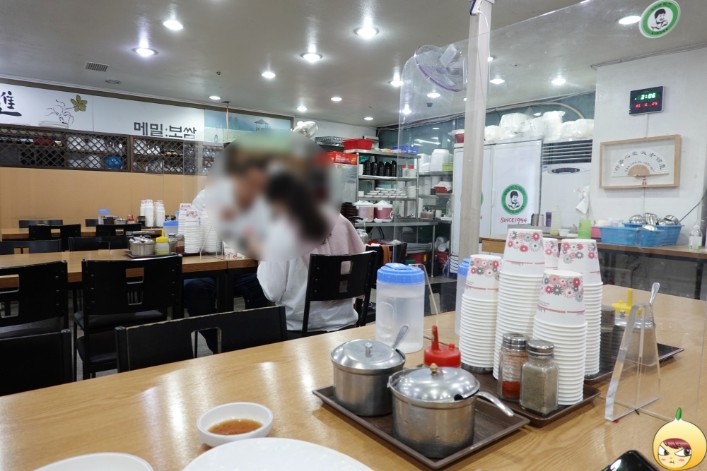 늦은 오후는 혼밥하기 좋은 시간이다. 2층도 있지만, 1층에 자리가 많은데 굳이 올라갈 필요는 없다. 코로나19 시국이라 일반컵이 아니라 종이컵이다. 종이컵을 안쓰려고 노력하고 있기에, 물은 마시지 않는다. 물대신 뜨끈한 육수를 마시면 되니깐.