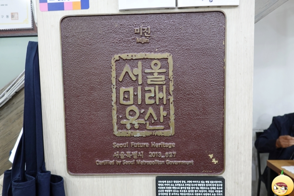 밖에 있는 명패는 가짜, 진짜는 카운터 옆에 있다. SINCE 1954. 미진은 청진동에서 개업을 하고 3대째 이어가고 있는 메밀 전문식당이다. 대대로 이어져 오는 조리법으로 우려낸 육수에 미진만의 특별한 배합으로 뽑아낸 면을 담아 내는 메밀국수는 담백한 육수와 은은한 메일향이 감도는 부드럽고 쫄깃한 면이 특징이라고 아래 안내문에 나와 있다.
