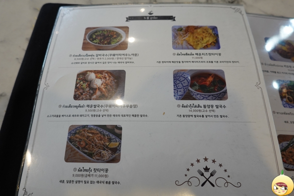 역시 태국 음식점답게 메뉴가 많아도 겁나 많다. 전메뉴 도장깨기는 애당초 포기하고, 가장 먹고 싶은 메뉴를 골랐다. 우리네 겉절이같은 쏨땀(10,000원)과 갈비탕같은 갈비국수(8,500원)를 주문했다.