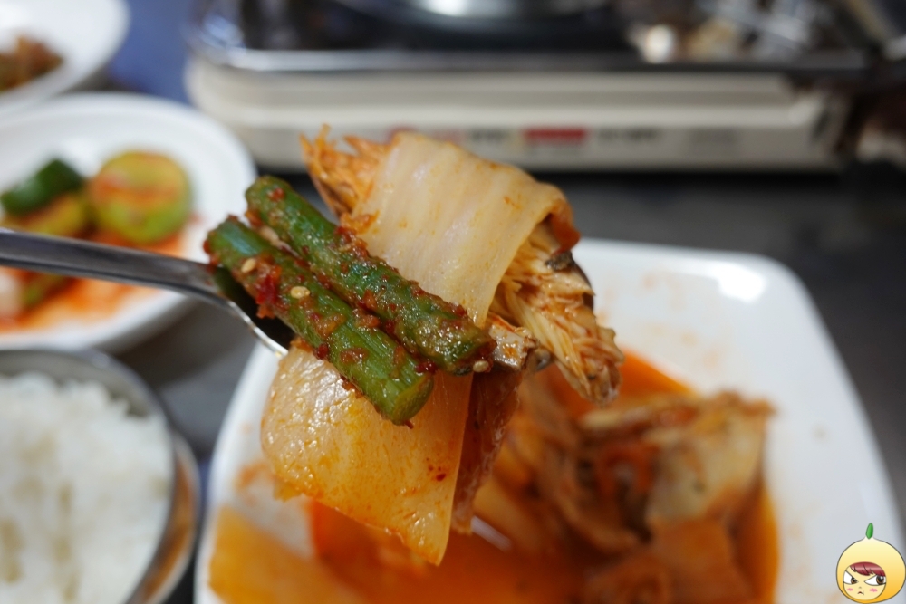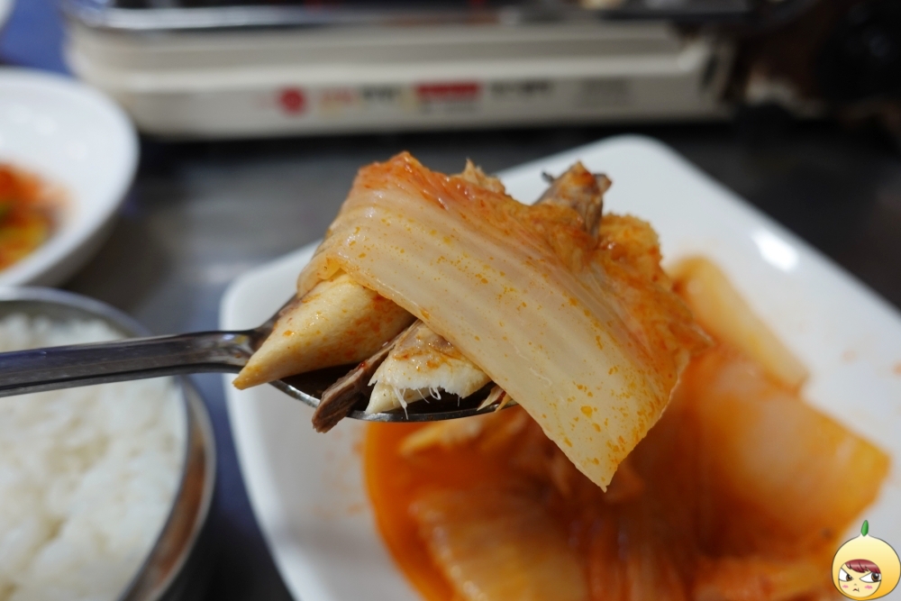 마성의 국물이라고 해도 될만큼 국물이 진짜 끝내준다. 사람들이 따로 육수 추가를 할 정도로, 찜인데 찌개인듯 시원하면서도 깔끔하다. 국물은 짜지 않고, 감칠맛이 있어 숟가락질을 멈출 수가 없다. 고등어와 김치는 따로 먹어도 되지만, 요렇게 같이 먹는게 더 좋다.