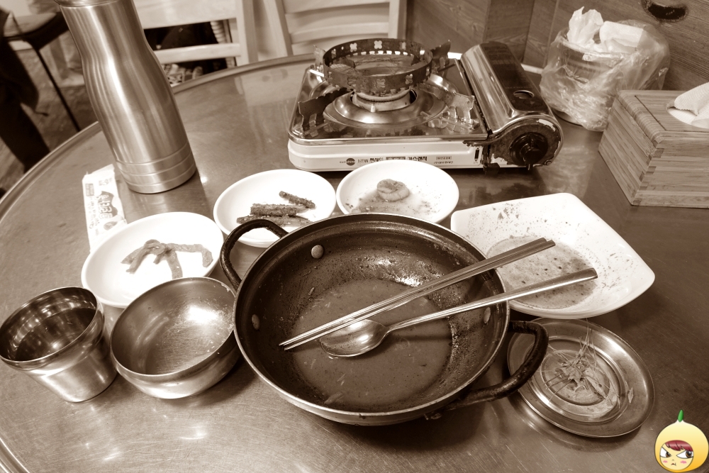 가스버너에서 냄비를 내릴때, 충동이 찾아 왔지만 꾹 참고 절대 비비지 않고 취하지 않고 얌전하게 먹었다. 1인분이지만, 절대 한공기로 끝날 수 없는 양이라서 밥 2공기는 선택이 아니라 필수다.