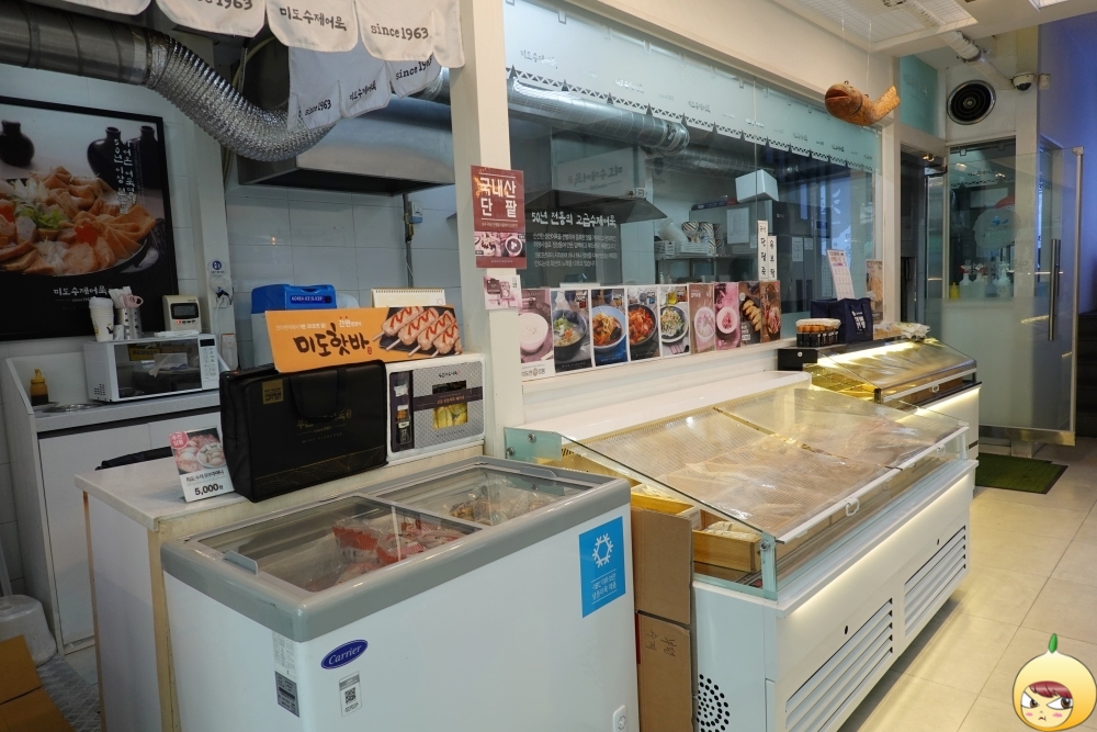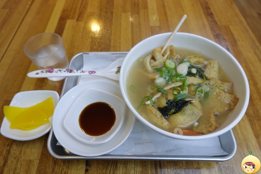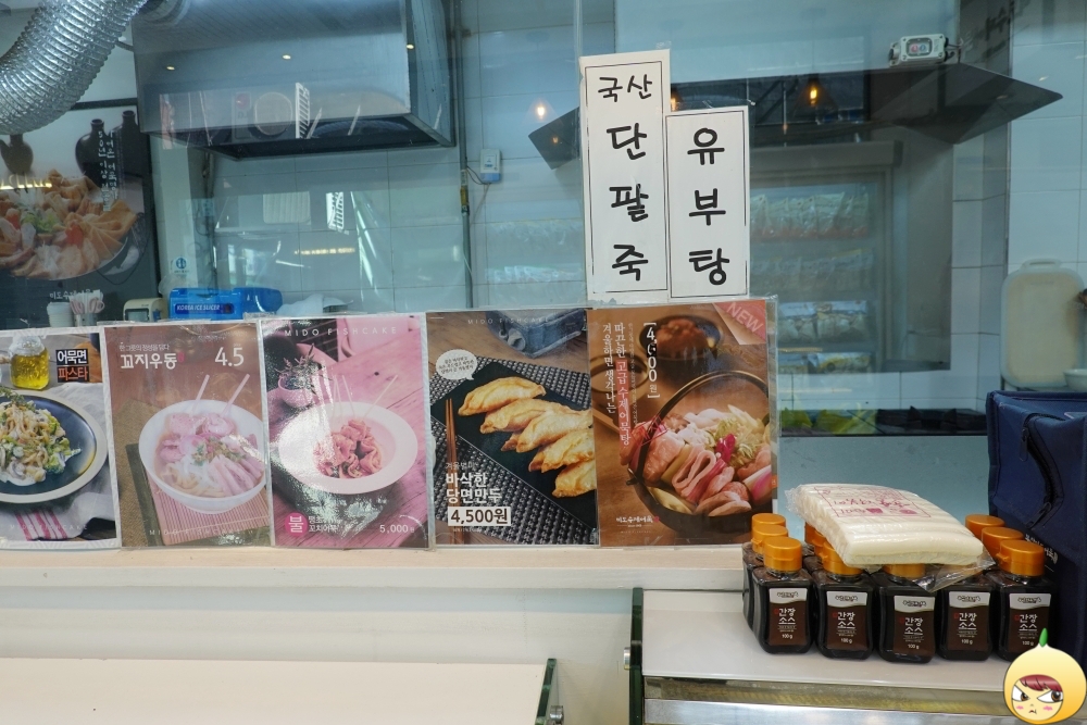 단순하게 어묵을 사서 전자레인지에 데워서 먹는 공간이 아니라, 음식으로 만들어서 판매하는 공간이다. 우동, 짬뽕, 볶이, 파스타 등등 메뉴도 은근 많다. 미도어묵에서는 어묵도 좋지만, 유부주머니를 꼭 먹으라고 해서, 유부탕(5,000 원)을 주문했다. 유부탕이지만, 어묵이 조금 들어간다.