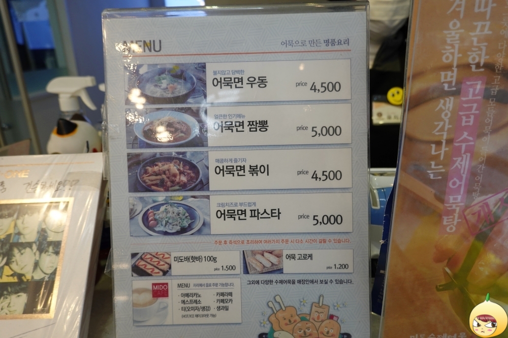 아까와는 분위기가 완전 다르다. 좀 전에는 시장표 어묵집이었다면, 지금은 고급스런 어묵카페다. 먹지 못하고 구경만 하면 어쩌나 했는데, 미도카페에서 맘껏 먹어야겠다.