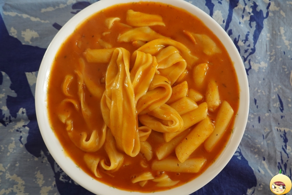 내용물은 떡, 소스 그리고 어묵면뿐이다. 조리방법은 밀키트답게 엄청 간단하다. 물이 끓기도 전에 떡과 어묵면을 넣고, 면이 풀어지고 떡이 말랑말랑해지면 소스를 넣으면 된다. 그리고 떡이 바닥에 붙지 않도록 잘 저어가면서 2분정도 더 끓이면 끝이다.