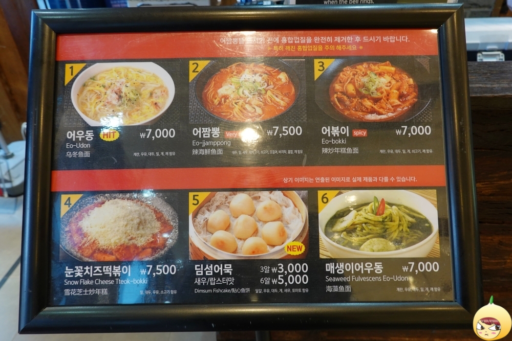 어묵면이 들어있는 메뉴가 이렇게나 많다니, 고민의 시간이 깊어만 간다. 어우동으로 결정을 하고 주문을 하려는데, 코로나19로 인해 5시무렵에 주방을 끝낸다고 한다. 즉, 지금은 주문을 받지 않는다는 말. 다음날 오면 먹을 수 있냐고 물어본보니, 10시 무렵에 오면 먹을 수 있단다.
