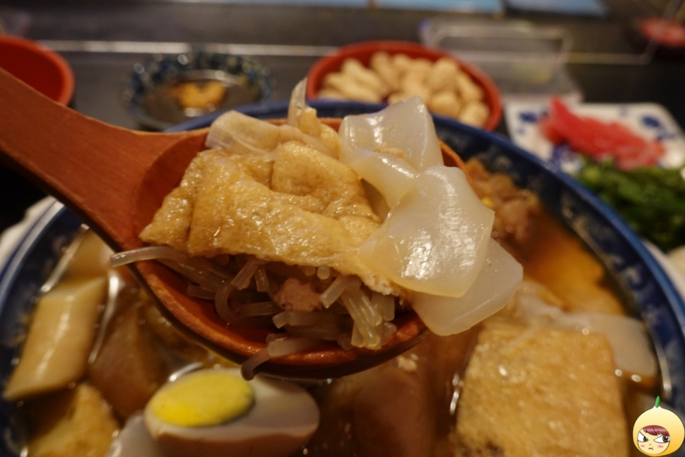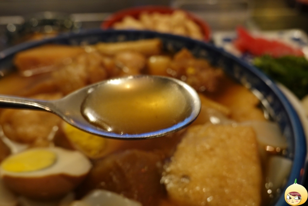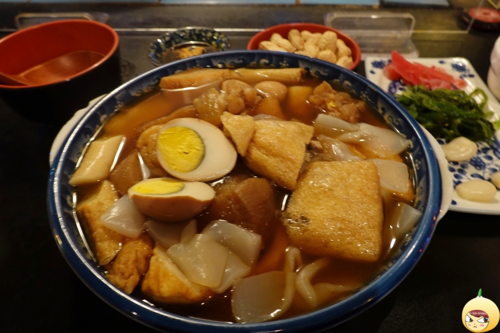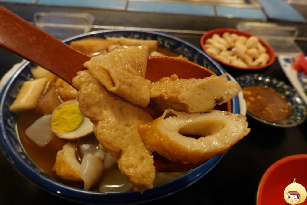 일드나 영화를 보면, 그들은 포장마차에서 먹고 싶은 메뉴를 골라 국물보다는 건더기 위주로 먹는다. 하지만 우리는 곤약, 유부주머니, 어묵, 스지 등을 골라서 먹을 수는 없고 모둠으로 주문해야 한다. 또한 그들과 달리 우리는 건더기뿐만 아니라 국물도 매우 몹시 좋아한다.