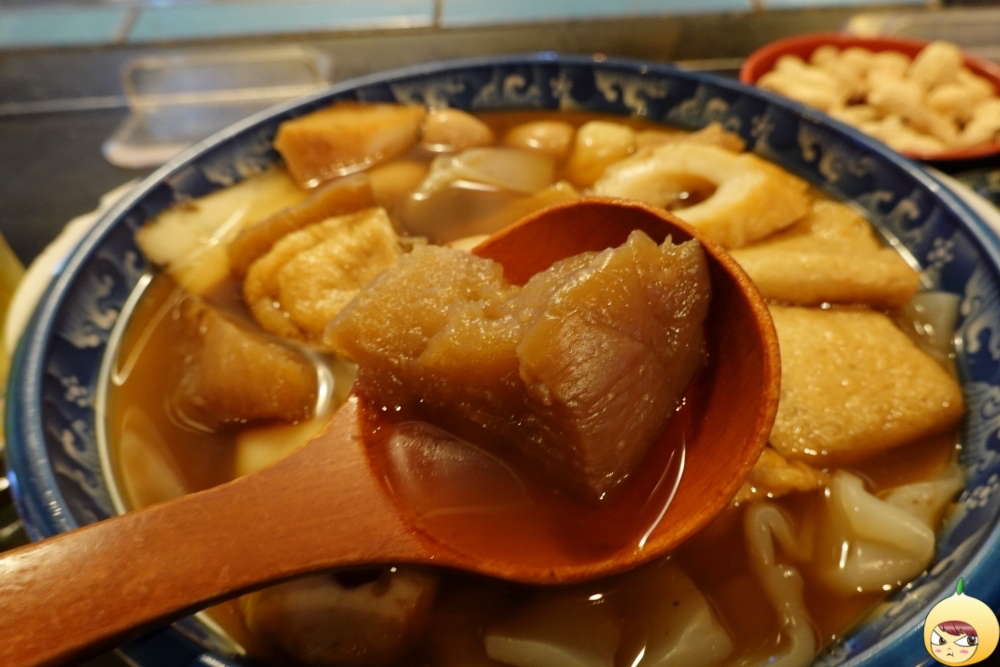 어묵탕인데 어묵보다는 유부주머니와 곤약부터 먹는다. 모듬어묵탕이라서 스지가 나오는데, 스지보다는 곤약을 더 좋아해서 스지는 조금 대신 곤약을 많이 달라고 했다. 곤약 자체는 아무 맛도 없지만, 칼로리로 낮고 식감이 매력적이라 좋아한다.