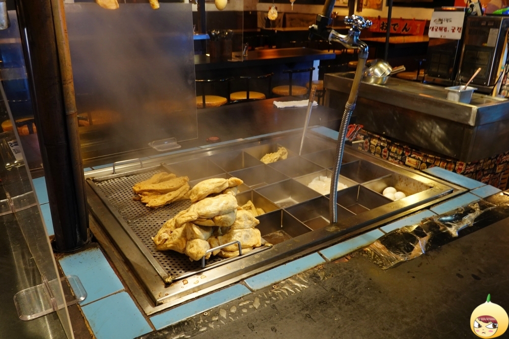 첫손님이다 보니, 사람없는 내부는 맘껏 찍을 수 있었다. 물론 주인장에게 허락을 받은 후에 촬영을 했다. 오뎅바답게 중앙에 커다란 틀, 통 암튼 사각으로 된 냄비(?)에 육수에 어묵 그리고 여러가지가 바글바글 끓고 있다.