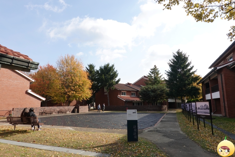 검색을 하고 오긴 했지만, 이정도로 멋진 곳일지 몰랐다. 빨간벽돌 건물은 이국적인 풍경을 자아내고, 오랜 세월 이곳을 지켜온 나무는 단풍으로 화려함을 뽐내기 바쁘다. 여기에 시리도록 푸른하늘까지 삼박자가 딱딱 맞아 떨어진다.