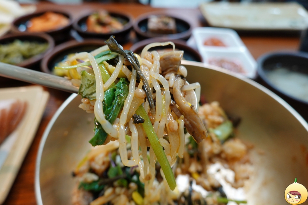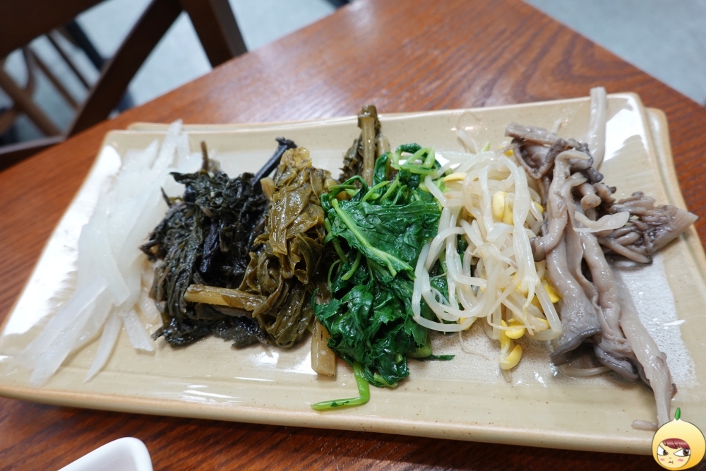 그리고 무국과 비빔밥에 들어갈 6가지 나물이다. 비빔밥이라 반친이 많지 않아도 되는데, 백반집인 듯 가짓수가 꽤 많다. 혼자 먹기에 과한데 했는데, 염도가 강하지 않아서 반찬을 많이 먹어도 부담이 없다.