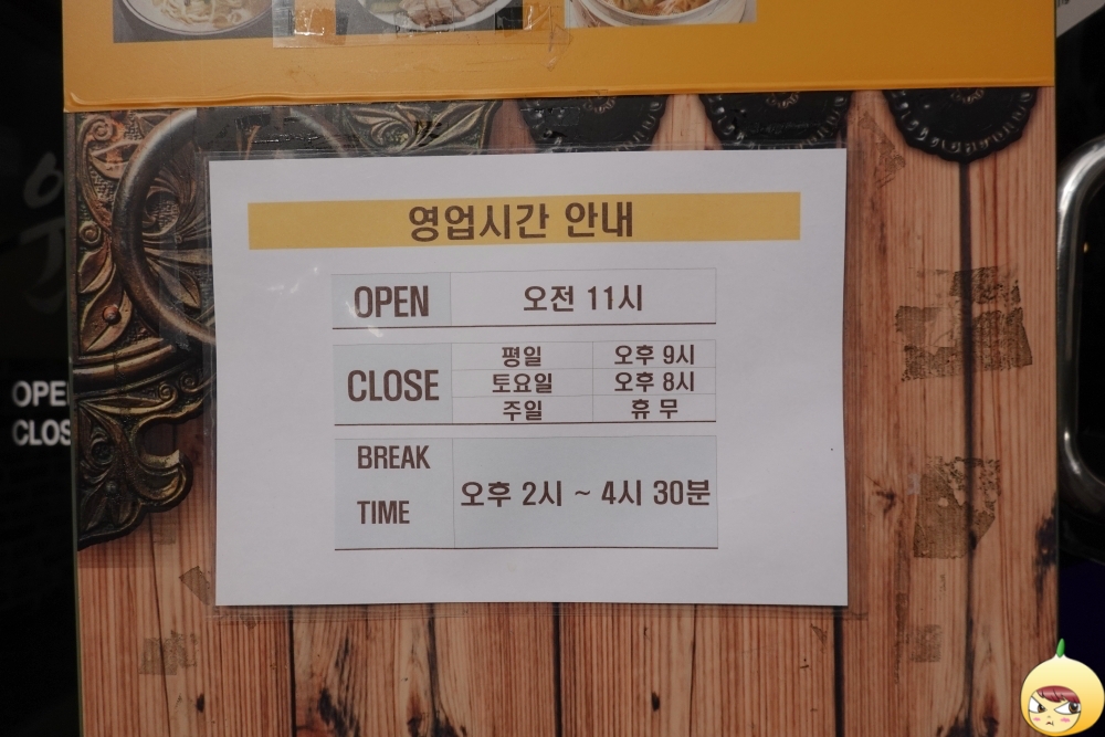 영업시간은 11시부터 9시까지이며, 2시부터 4시 30분까지 브레이크 타임이다. 문을 열고 좁은 통로를 따라 쭉 들어와야 한다. 의자가 있다는 건, 줄서서 먹는 집이라는 뜻. 혼밥이기도 하고 혹시나 기다릴까봐, 바쁜 점심시간이 지나 1시무렵에 왔다.