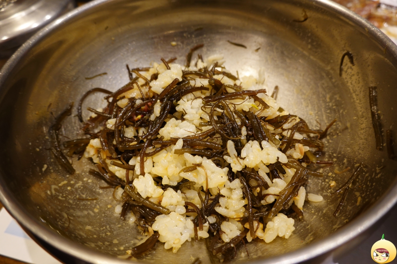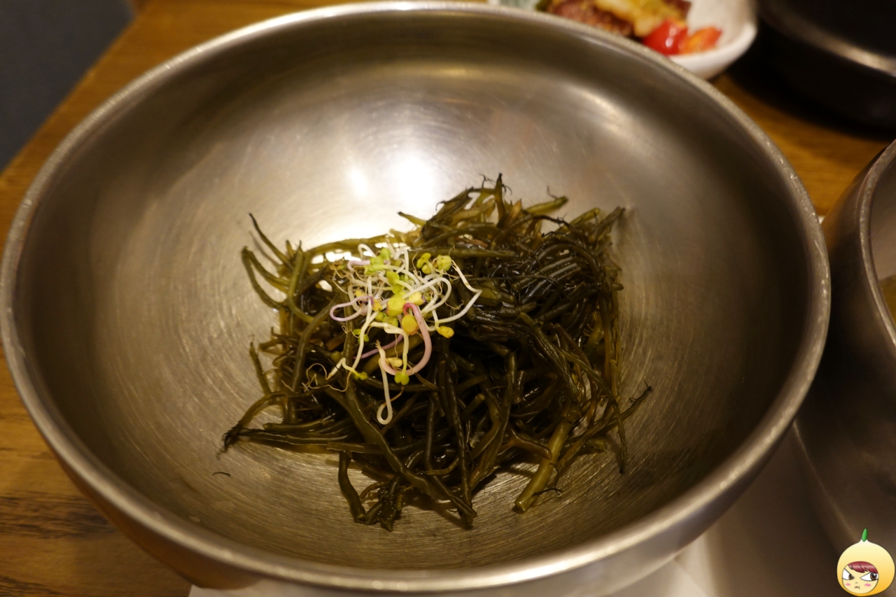 해초비빔밥에 보리굴비는 그닥 추천하고 싶지않다. 해초가 주는 꼬들꼬들한 식감은 좋은데, 보리굴비와 어울리지 못하고 따로 노는 느낌이다. 더구나 강된장을 많이 넣었는지 짠맛에 짭조름한 보리굴비까지, 해초비빔밥은 슴슴한 된장국과 먹으니 딱이다.