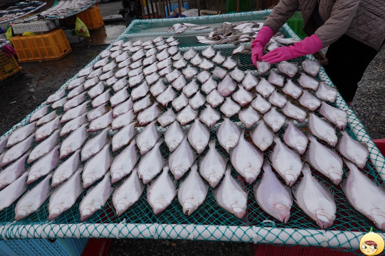 반건조 가자미는 처음 봤다. 생물도 없어서 못 먹는데, 얼마나 많이 잡히면 이렇게 건조를 할까? 생물과 달리 건조를 하면 감칠맛이 폭발을 한다. 그 맛이 매우 몹시 궁금하나, 이번 묵호여행은 도루묵호이기에 꾹 참았다.